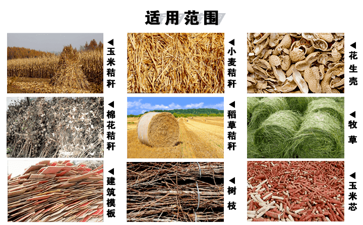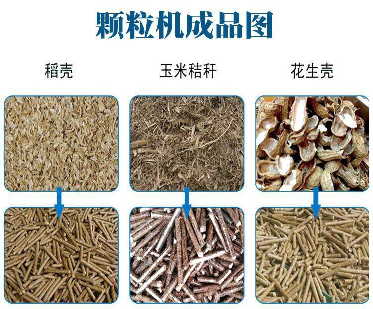 我廠生產的秸稈顆粒機可以將農業上廢棄掉的玉米秸稈,樹枝,牧草,木屑,鋸末,稻殼,花生殼等物料作為原料,利用秸稈顆粒機通過碾制,擠壓